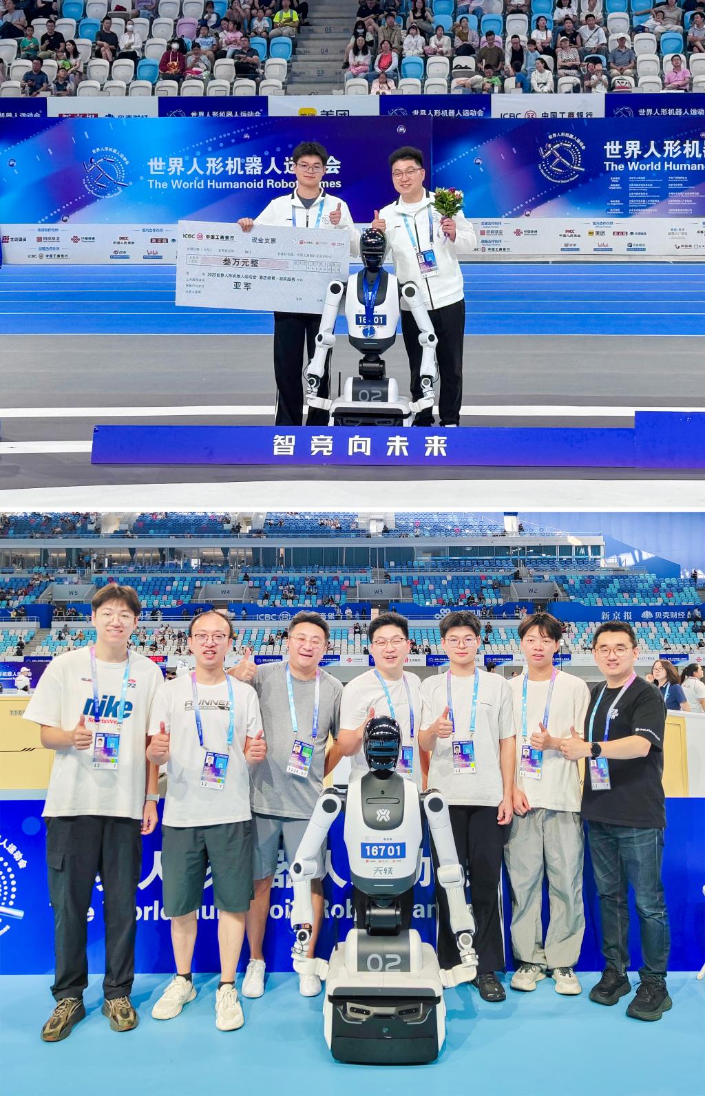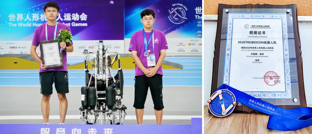 8月14日至17日,2025年世界人形机器人运动会作为全球首个以人形机器人为参赛主体的综合性体育盛会于在北京国家速滑馆“冰丝带”盛大举行。赛事吸引了来自16个国家的280支参赛队伍,围绕竞技赛、表演赛、场景赛、外围赛共26个赛项展开487场激烈比拼,成为展现全球人形机器人技术实力的重要舞台。其中,我校HUSTROBOCON机器人队勇夺外围赛“篮球”项目亚军、“智迎者”团队获得场景赛“酒店迎宾”项目银牌。