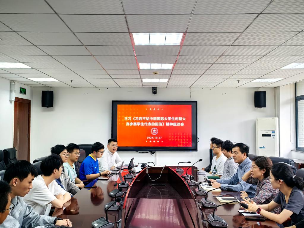 10月17日下午,机械学院召开专题学习会,传达学习习近平总书记给中国国际大学生创新大赛参赛学生代表的回信精神。学院党委书记张芬、副书记张绍浩、机械学院金奖项目团队负责人周颖博士、以及30余名科创团队学生代表集体学习回信内容以及习近平总书记关于科技创新的重要论述,并听取同学们对科技创新的相关建议。
