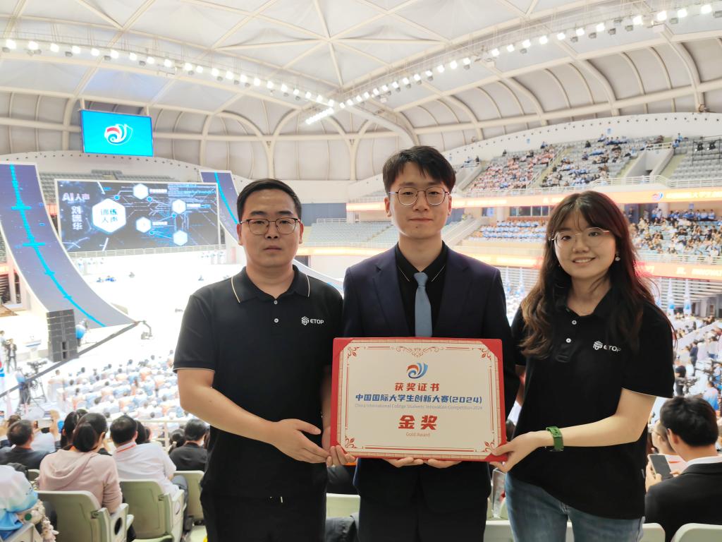 10月12-15日,中国国际大学生创新大赛(2024)全国总决赛在上海交通大学落下帷幕,我校副校长冯丹、英国365公司官网党委书记张芬前往现场参加活动。英国365公司官网共获得1项金奖和1项银奖,其中,由李好、高亮、李新宇、黄宏老师指导,周颖、赵康、舒正涛、李朝旭等同学完成的项目“ETop——全球领先的创新结构优化设计软件平台”荣获主赛道金奖,并以分组第一进入排位赛;由李新宇、高亮、张春江、李好、高艺平老师指导,姚友杰、邢家琦、黄金、张滋雨、王思远、周金龙、赵睿思等同学完成的项目“智造者——AI赋能的车间调度系统”荣获产业命题赛道银奖。
