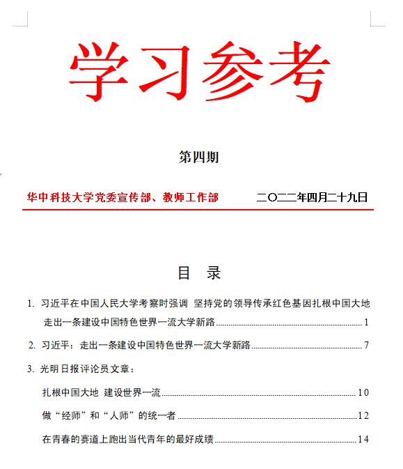 “要坚持党的领导,坚持马克思主义指导地位,坚持为党和人民事业服务,落实立德树人根本任务,传承红色基因,扎根中国大地办大学,走出一条建设中国特色、世界一流大学的新路。”在五四青年节即将到来之际,习近平总书记来到中国人民大学考察调研,向全国各族青年致以节日的祝贺,向中国人民大学全体师生员工、向全国广大教育工作者和青年工作者致以诚挚的问候,对我国高等教育办学发展方向提出了进一步的要求。